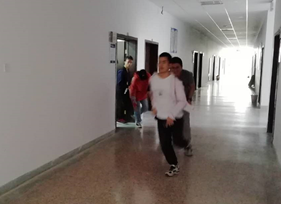 “火灾”发生后,学生在实验指导老师指挥下,有序从安全通道撤离实验大楼,不到五分钟,在A3楼进行实验的师生全部到达安全地点。